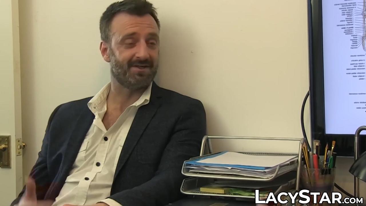 Mature British babe Lacey Starr sucks a huge cock, then rides it cowgirl and missionary. She takes his big dick in her ass doggystyle. He cums in her mouth and she swallows it all.