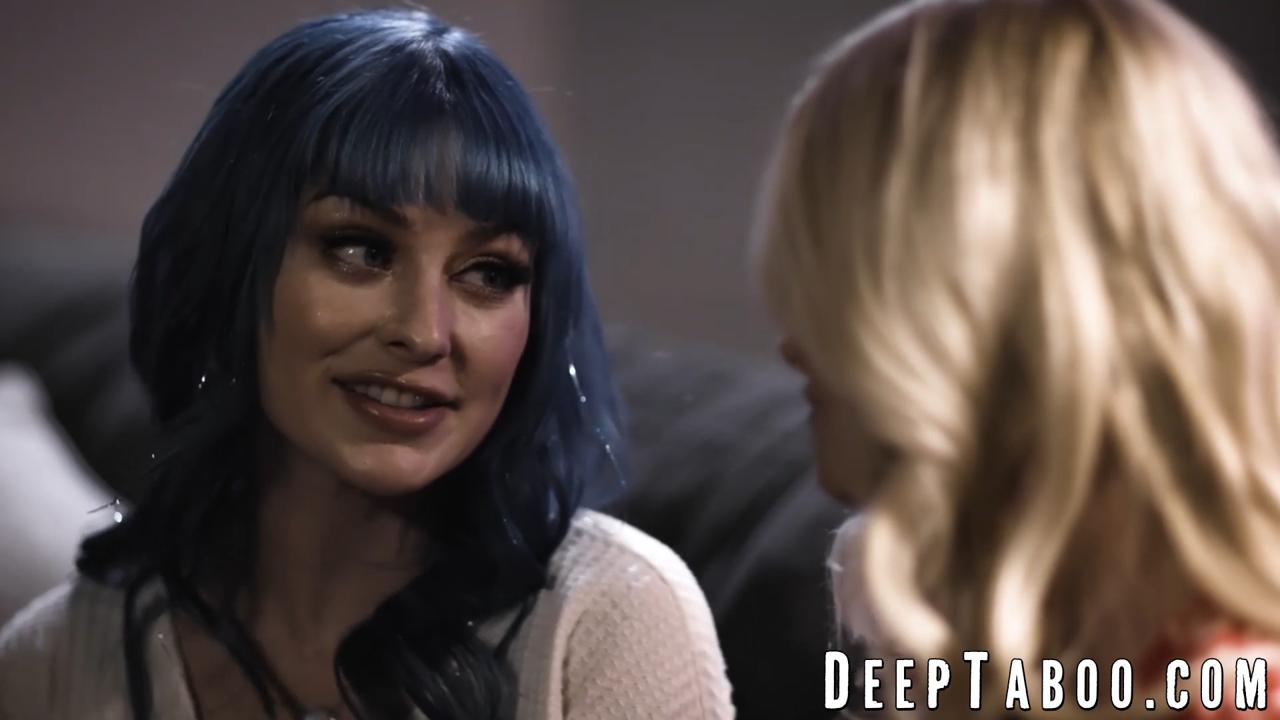 Blonde MILF Serene Siren licks and teases teenager Jewelz Blu's face, making her tongue dance on her wet pussy. She then fingers herself, showing off her wetness before letting Jewelz taste her sweet juices. The taboo encounter ends with Serene rimming Jewelz's ass while sitting on her face.
