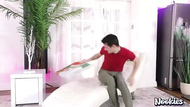 Hot tanned MILF with huge tits and tattoos receives her large ass filled by a pizza delivery guy. She sees him, seduces him, and they end up doing anal sex in her kitchen. He cums inside her and she loves every second of it.