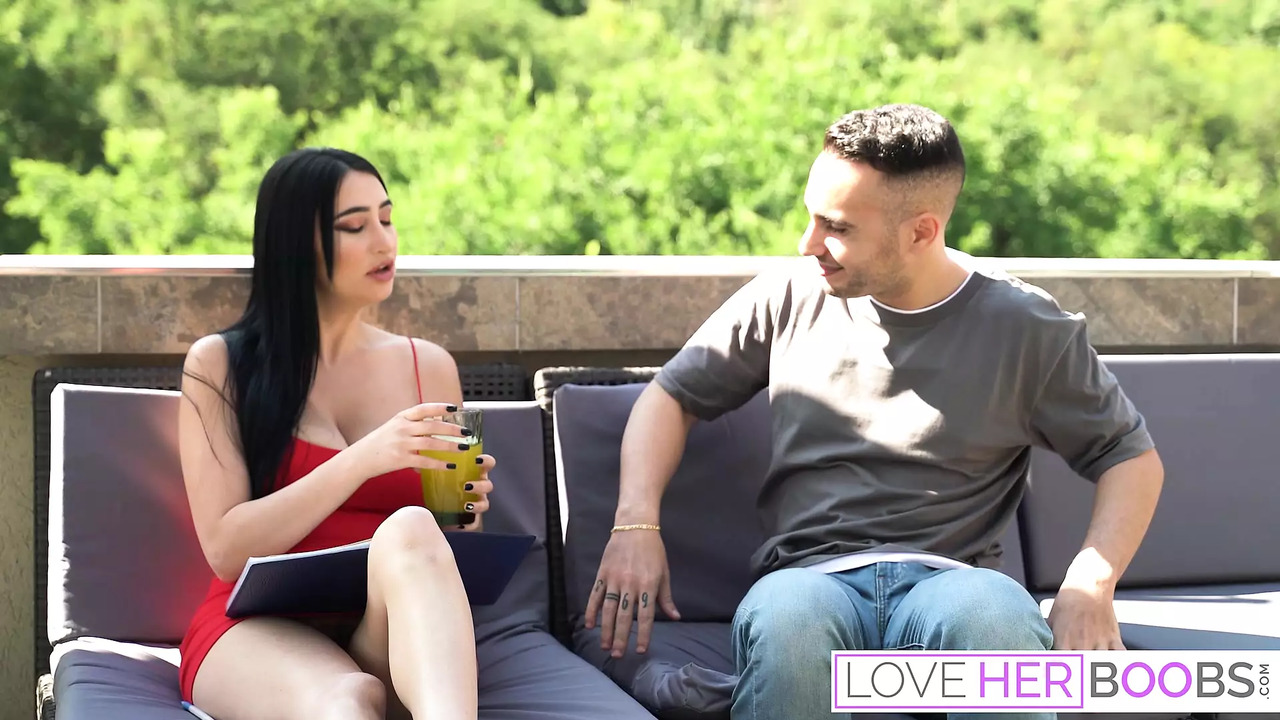 A busty English teacher with the biggest tits gives a sloppy blowjob while her partner sucks on her nipples. She then gets a titjob, with him drilling her melon. He cums on her big ass at the end.