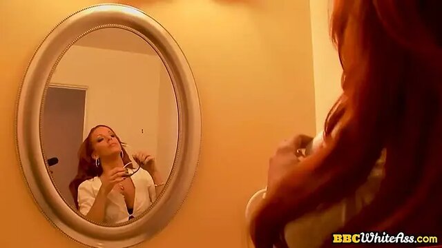 Redhead slut gets big black cock in her ass in a dirty threesome