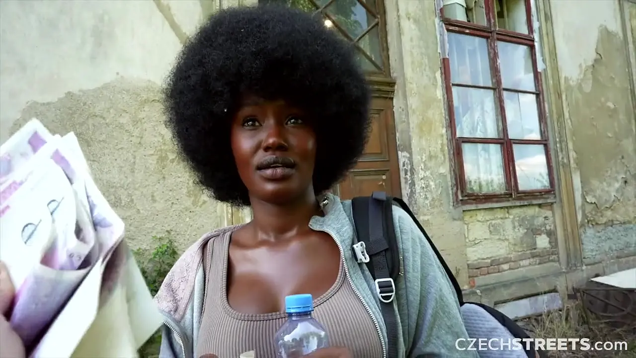 Cute busty black girl Lexi Luv sucks a stranger's cock on a crowded Czech street. She goes down on him fast and deep, making him cum quickly. No one seems to mind as she winks at the camera.