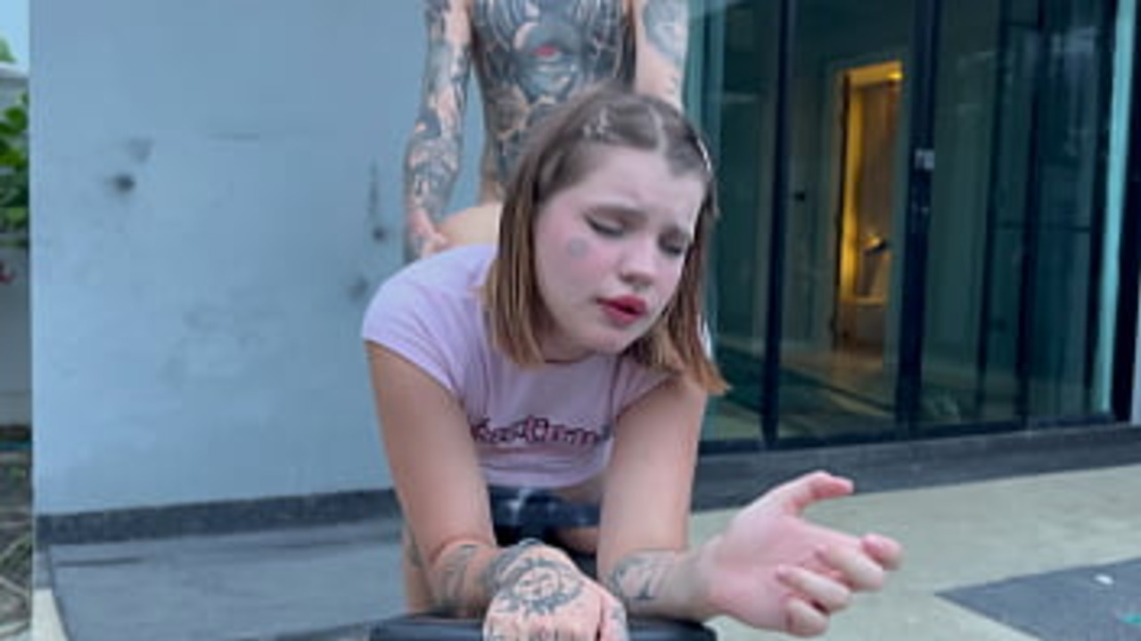 Cute European brunette step sister does yoga but ends up deep throating her brother's big cock. She rides him doggystyle and takes a rough fucking. He pounds her pussy hard and cums inside.