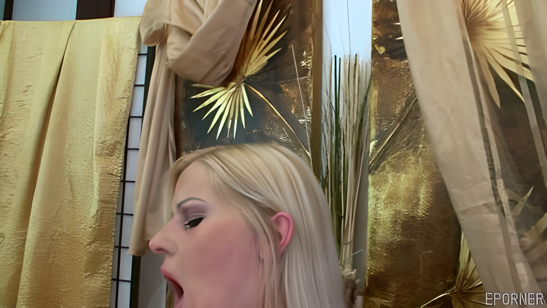 Sexy blonde MILF gives a powerful blowjob with lots of suction. She deepthroats his cock, making him groan in pleasure. He cums all over her pretty face.